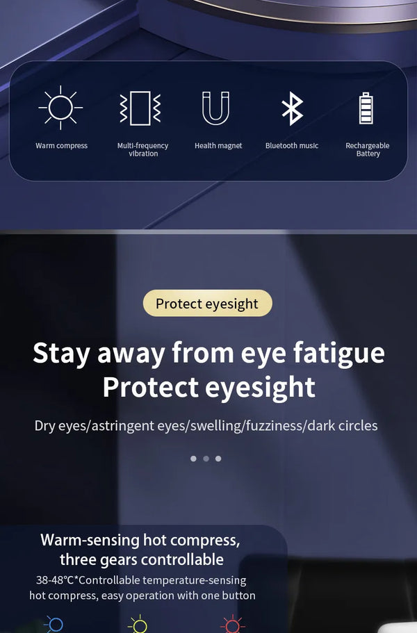 • Smart Vibration Massage: Helps reduce eye strain, puffiness, and fatigue.
